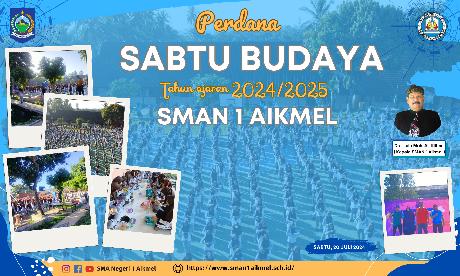 SMA Negeri 1 Aikmel-Sabtu 20 Juli 2024 SMA Negeri 1 Aikmel menggelar kegiatan Sabtu Budaya yang dengan Senam Gatra, Sarapan Sehat Bergizi, Sekolah Bersih dan Asri, serta kegiatan pementasan tari. Kegiatan ini diikuti oleh seluruh siswa kelas X, XI, dan XII, serta para guru dan staf Tata Usaha (TU). Acara dimulai pukul 07.00 WITA dengan kegiatan membaca Al-Quran selama 30 menit. Suasana khidmat dan...