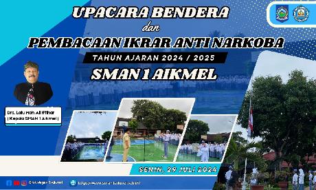 Aikmel, 29 Juli 2024 – Seluruh warga SMA Negeri 1 Aikmel mengikuti upacara bendera yang dilaksanakan di lapangan utama sekolah pada hari Senin, 29 Juli 2024. Upacara ini dirangkaikan dengan pengucapan janji dan ikrar anti narkoba, sebagai bentuk komitmen sekolah dalam mendukung generasi muda yang bebas dari narkoba. Upacara dipimpin oleh Wakil Kepala Sekolah Bidang Humas, Bapak Basyirudin...