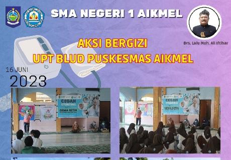 SMAN 1 Aikmel-Dalam rangka menyukseskan program pencegahan stunting UPT BLUD Puskesmas Aikmel mengadakan kegiatan pencegahan stunting di SMAN 1 Aikmel pada hari Jumat 16 Juni 2023 melalui Gerakan Remaja Sehat Tanpa Anemia (Gema Setia). Gema Setia diawali dengan kegiatan senam SKJ Pelajar yang dilanjutkan dengan kegiatan cuci tangan bersama dengan sabun dan air men...