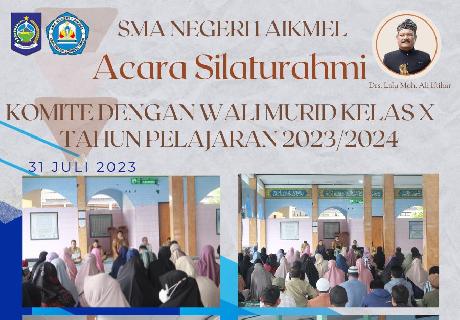 SMAN 1 Aikmel-Dalam rangka terus menjaga tali silaturrahmi maka pada hari Senin 31 Juli 2023 SMAN 1 Aikmel mengadakan rapat bersama Komite Sekolah dan wali murid kelas X yang di pusatkan di Musolla Sekolah. Kegiatan ini diikuti langsung oleh Kepala SMAN 1 Aikmel, Komite Sekolah, Wakil Kepala Sekolah Bidang Kesiswaan, Wakil Kepala Sekolah Bidang Sarana, Wakil Kepala Sekolah Bidang Humas, perwakilan...