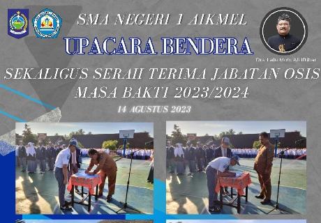SMAN 1 Aikmel-Pada Senin 14 Agustus 2023 SMAN 1 Aikmel melaksankan upacara bendera sekaligus pelantikan pengurus osis yang baru masa bakti 2023/2024. Rangkaian upacara kali ini diisi dengan pembacaan SK Pengurus Osis yang baru oleh Wakil Kepala Sekolah Bidang Kesiswaan Saipudin Ansori, S.Pd yang dilanjutkan dengan penyerahan bendera dan almamater dari pengurus osis yan...