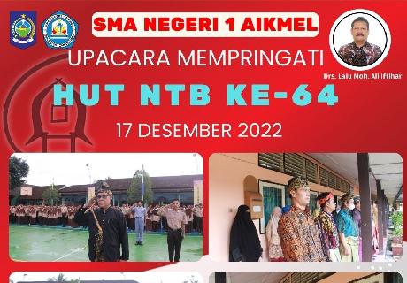 SMAN 1 Aikmel-Hari Sabtu ini terasa spesial bagi masyarakat Bumi Gora karena pada hari ini tanggal 17 Desember 2022 adalah Hari Ulang Tahun Provinsi NTB ke 64 termasuk di SMAN 1 Aikmel yang diperingati dengan upacara bendera. Adapun yang bertindak sebagai upacara bendera Wakil Kepala Sekolah Bidang Kesiswaan Muhardi, S.E yang diikuti oleh seluruh warga sekolah. Semua guru dan staf Tu menggunakan...
