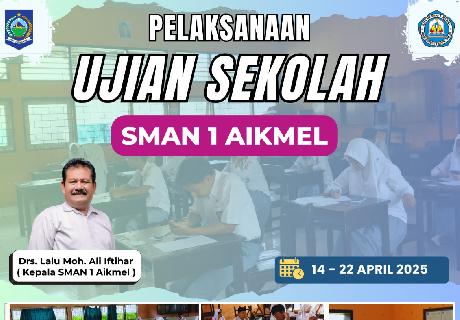 Aikmel, 14 April 2025-SMA Negeri 1 Aikmel menyelenggarakan Ujian Sekolah (US) mulai tanggal 14 hingga 22 April 2025. Pelaksanaan ujian ini dihadiri oleh seluruh siswa kelas XII yang sudah menjalani hampir tiga tahun proses pembelajaran. Rapat persiapan ujian yang berlangsung pada 9 April 2025 dihadiri oleh kepala sekolah, Bapak Drs. Lalu Moh Ali Iftihar, serta seluruh panitia dan pengawas ujian...