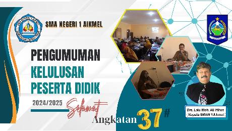 SMAN 1 Aikmel- Pada Selasa 5 Mei 2025 SMA Negeri 1 Aikmel mengadakan rapat penentuan kelulusan kelas XII Tahun Pelajaran 2024-2025 atau angkatan 37. Pertemuan yang dihadiri oleh Kepala SMA Negeri 1 Aikmel Bapak Drs Lalu Moh Ali Iftihar dan diikuti oleh semua guru dan staf TU yang berlangsung di ruang guru dimulai pada pukul 10.25 WITA. “Mulai tahun in...