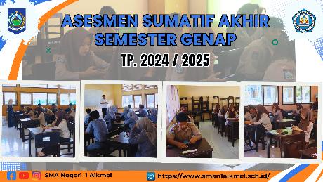 Aikmel, 27 Mei 2025 – SMA Negeri 1 Aikmel melaksanakan kegiatan Asesmen Sumatif Akhir Semester (ASAS) Genap Tahun Pelajaran 2024/2025 yang berlangsung mulai tanggal 27 Mei hingga 5 Juni 2025. Kegiatan ini diikuti oleh seluruh siswa kelas X dan XI dan dilaksanakan secara digital menggunakan aplikasi Exam Browser yang telah terpasang di perangkat HP masing-masing siswa. Pelaksanaan asesmen...
