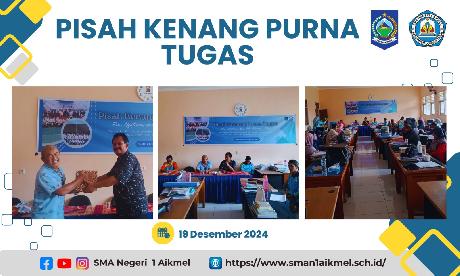 SMA Negeri 1 Aikmel mengadakan acara pisah kenang untuk dua guru tercinta, yaitu Bunda Drs Ngatinem dan Bapak Lalu Mulyadi, S.Pd, yang memasuki masa purna tugas pada hari Kamis 19 Desember 2024. Acara ini dilaksanakan di ruang guru baru dan dihadiri oleh seluruh tenaga pengajar di sekolah, meskipun Bunda Ngatinem tidak dapat hadir karena kondisi kesehatannya yang kurang baik. Acara dimulai dengan...