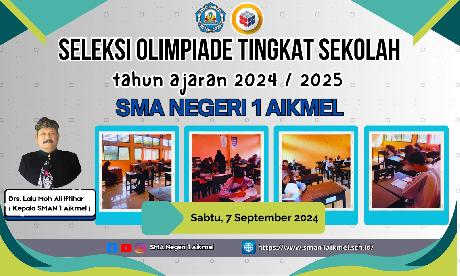 SMA Negeri 1 Aikmel- Sabtu 7 September 2024, SMA Negeri 1 Aikmel mengadakan seleksi Olimpiade Sains Nasional (OSN) tingkat sekolah untuk menentukan perwakilan siswa yang akan mengikuti OSN di tingkat selanjutnya. Seleksi ini diadakan untuk beberapa mata pelajaran utama, dengan jadwal yang terbagi dalam dua sesi. Mata pelajaran Matematika dan Biologi dilaksanakan pada pukul 08.30 hin...
