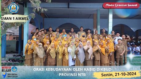 SMA Negeri 1 Aikmel- Senin 21 Okrober 2024 SMA Negeri 1 Aikmel menggelar kegiatan Orasi Kebudayaan yang disampaikan oleh Kepala Bidang Kebudayaan Dinas Pendidikan dan Kebudayaan Provinsi NTB, Bapak Lalu Abdurrahim, M.H. Kegiatan ini dihadiri oleh Kepala SMA Negeri 1 Aikmel, Bapak Drs. Lalu Moh Ali Iftihar, para guru, staf TU, dan 1.236 siswa. Orasi kebudayaan yang rencananya dilaksanakan...