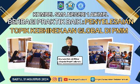 SMA Negeri 1 Aikmel Sabtu, 31 Agustus 2024, Komunitas Belajar (Kombel) SMA Negeri 1 Aikmel menyelenggarakan Berbagi Praktik Baik Penyelesaian Topik Kebinekaan Global pada Program Merdeka Mengajar (PMM). Kegiatan ini diikuti oleh 70 guru dan dipusatkan di ruang guru baru SMA Negeri 1 Aikmel. Kegiatan ini dibuka secara resmi oleh Pengawas Pembina SMA Negeri 1 Aikmel, Bapak Lalu Moh Hadi Safrudin...
