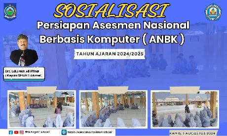 SMA Negeri 1 Aikmel-Selasa 1 Agustus 2024 SMA Negeri 1 Aikmel mengadakan sosialisasi persiapan Asesmen Nasional Berbasis Komputer (ANBK) Tahun Ajaran 2024/2025. Acara ini berlangsung di musolla sekolah dan diikuti oleh 50 peserta yang terdiri dari siswa-siswi kelas XI. Sosialisasi ini disampaikan oleh Ibu Agustina, S.Pd, yang menjabat sebagai Wakil Kepala Sekolah Bidang Kurikulum. Dalam presen...